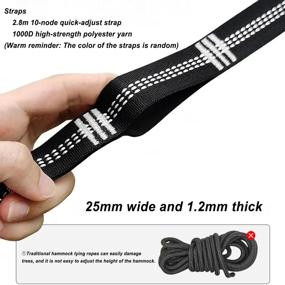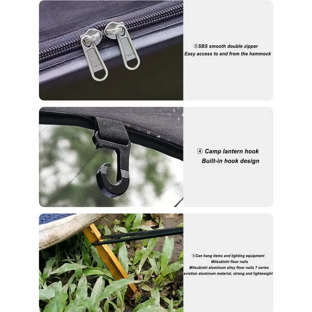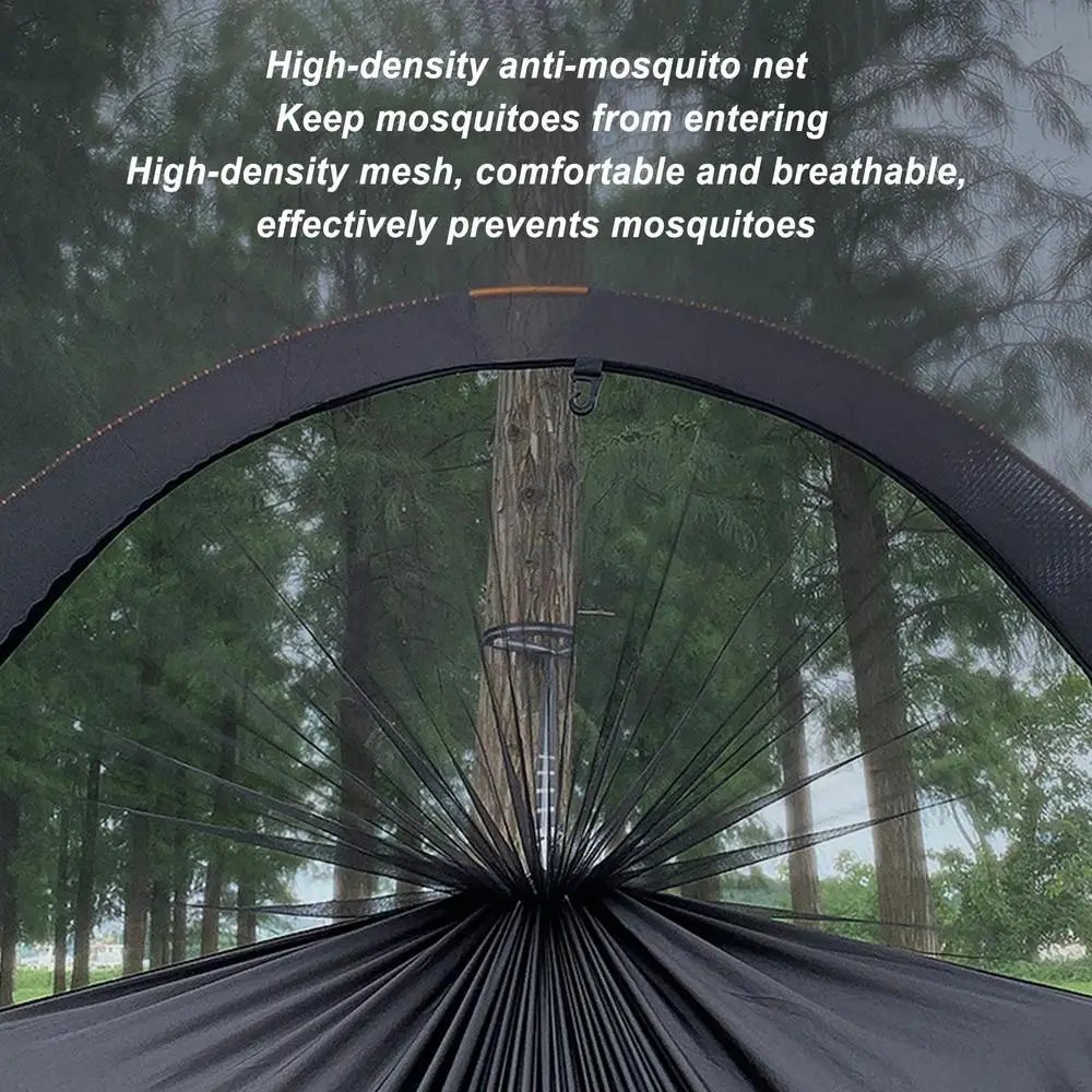 2.Enhanced Durability: Constructed with top-notch materials and an upgraded texture, this hammock tent boasts a notable ability to withstand harsh conditions and can hold up to 200KG without tearing.