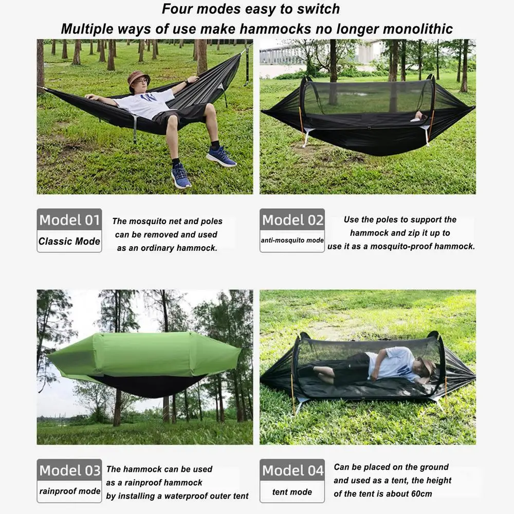 3.Multiple Purposes: Not just a hammock, this product can also be turned into a tent, swing, or sleeping bag, making it suitable for every occasion and need. A perfect choice for outdoor enthusiasts.