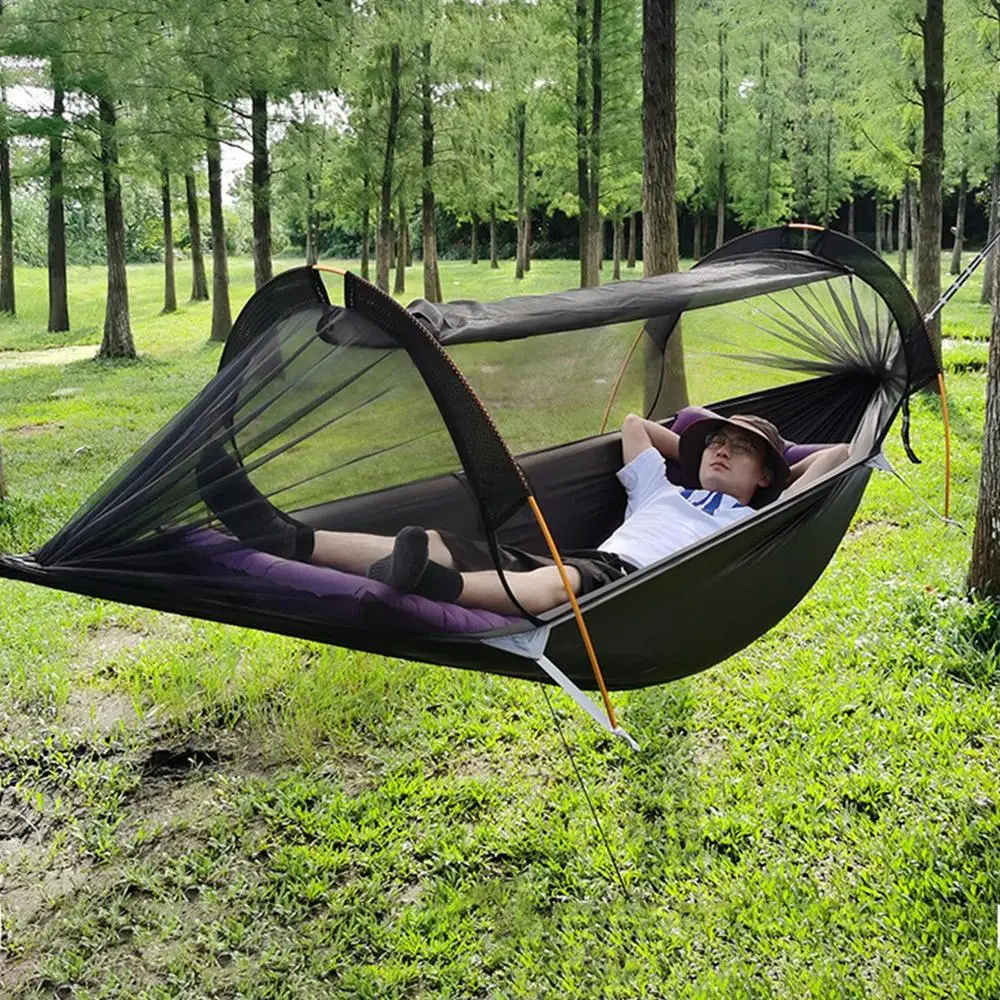 5.Easy to Carry: Our hammock tent boasts a lightweight build that's effortless to take along on any adventure. The compact size after folding means it fits snugly in your backpack. Relax and rest easy with this versatile, outdoors must-have.