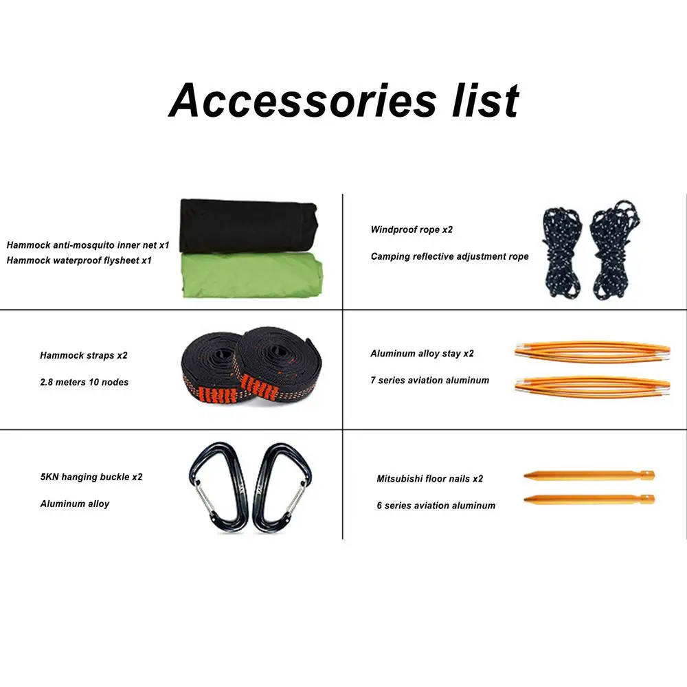 2 Person Backyard Hammock Tent Waterproof Backpacking Hammock 260x140cm Nylon Rocking Chair Outdoor Camping Hammock Swing Tent