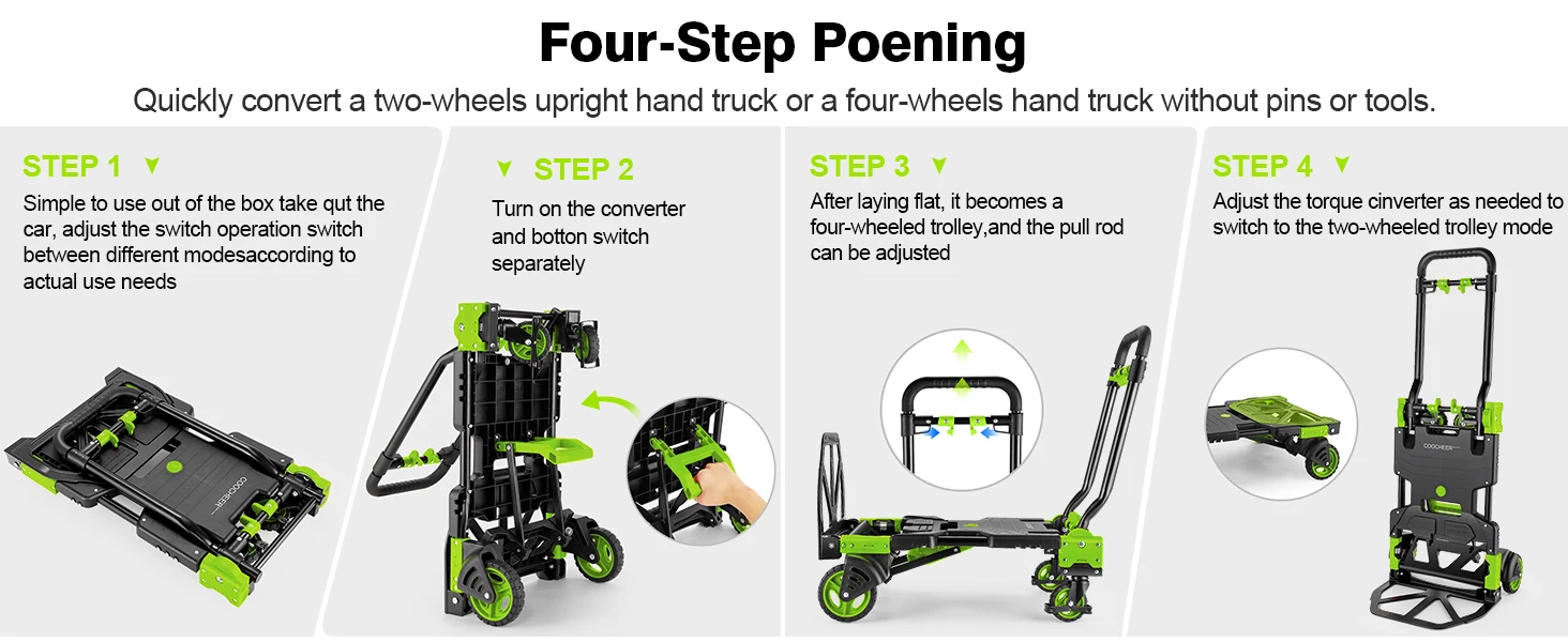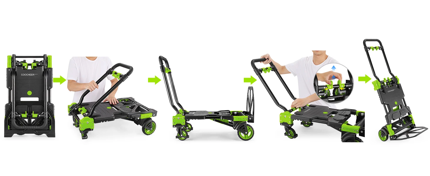 5. 💚💚Multifunctional & One Car Dual Use👉 The cart can be easily converted from a 4-wheel cart to a 2-wheel cart, which is flexible and suitable for various scenarios. Quick conversion with no pins or tools,only takes a few seconds to switch to a two-wheeled upright cart or a four-wheeled foldable cart.