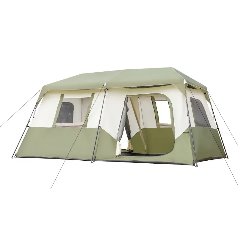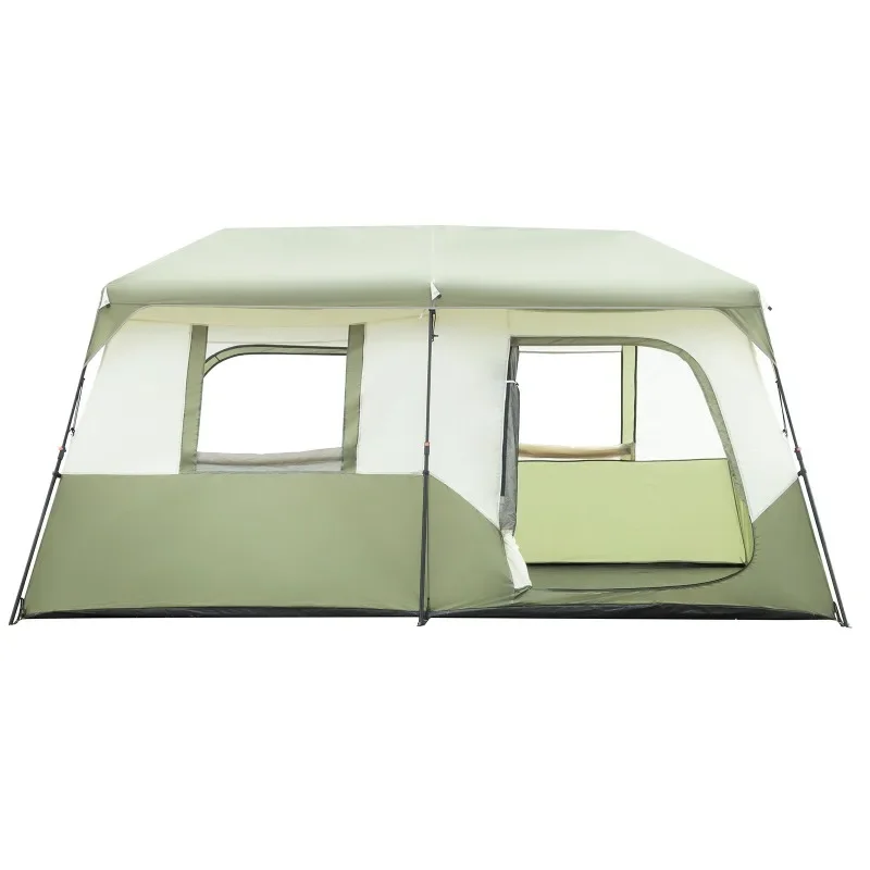 【Breathable and Visible】The camping tent has 2 large mesh door, 4 large mesh windows and mesh tent top. The doors on both sides provide easy access, which allow the breeze to come in and from entering while providing excellent visibility