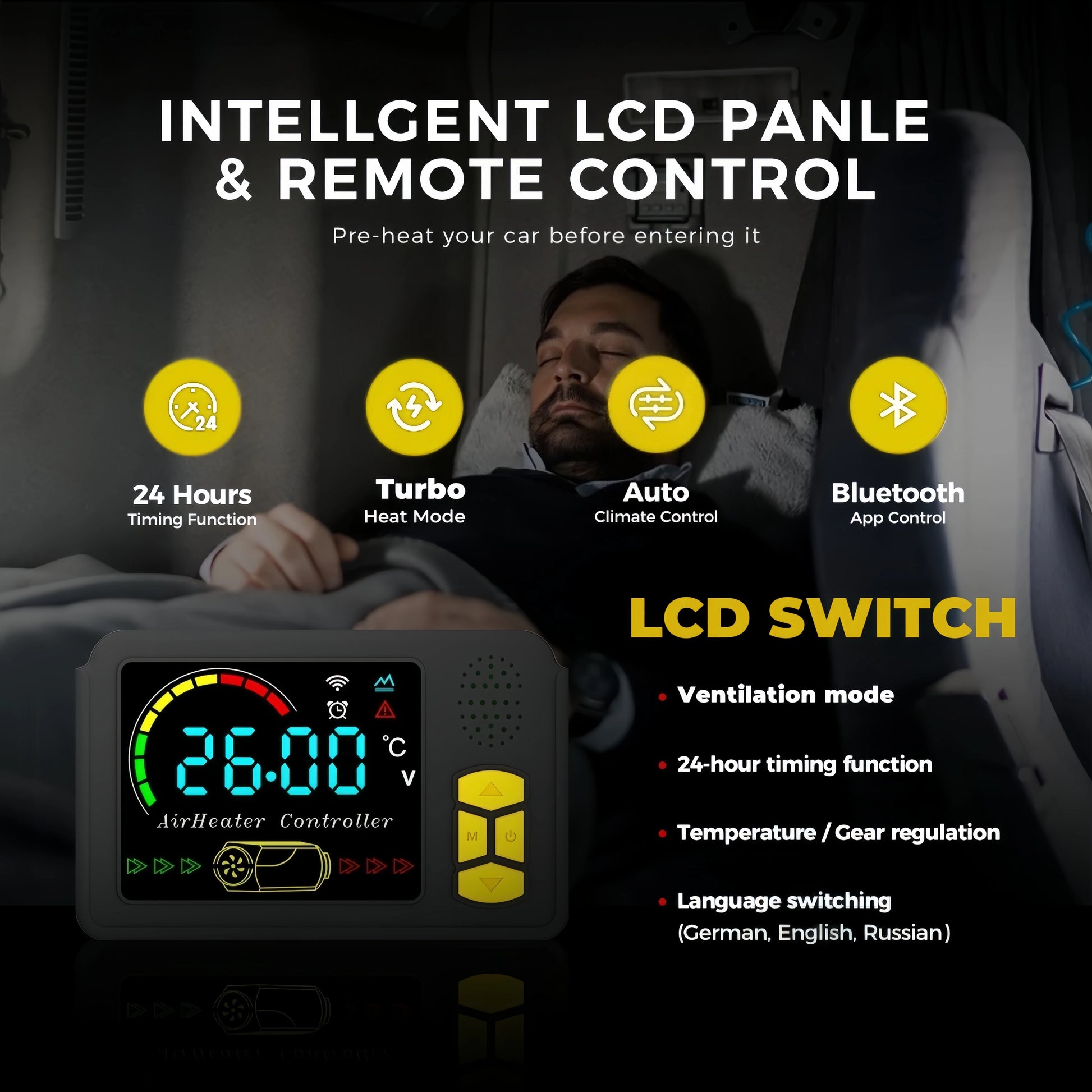 8KW Toolbox 12V/24V/110-240V Diesel Air Heater LCD & APP Bluetooth w/ Altitude Mode Parking Heater For Cars RV Camper tent