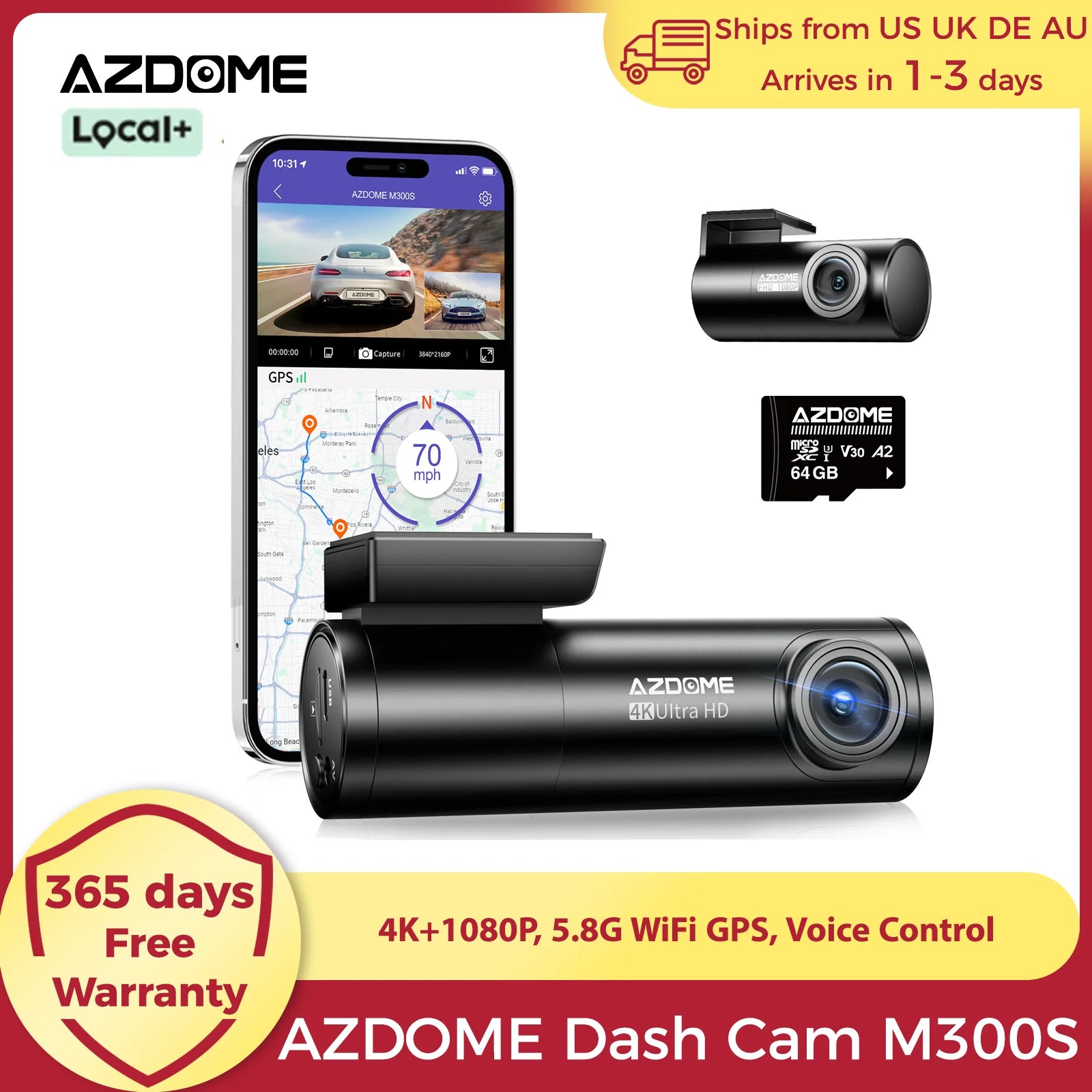 AZDOME M300S 4K Dash Cam Front and Rear, 5.8G WiFi GPS Dash Camera for Cars, Free 64GB SD Card, Voice Control, WDR Night Vision