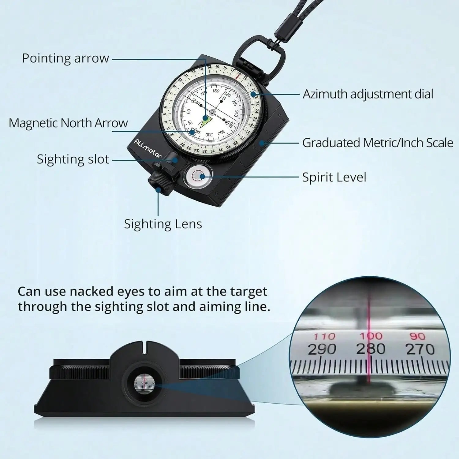 Introducing the Compass Multifunction Waterproof Military Outdoor Handheld Metal Sighting—the ultimate companion for all your hiking, camping, climbing, and biking adventures. Crafted with precision and durability in mind, this compass is designed to keep you on track, no matter where your journey takes you. Its robust steel case and waterproof construction ensure it withstands the elements, making it an essential tool for outdoor enthusiasts.