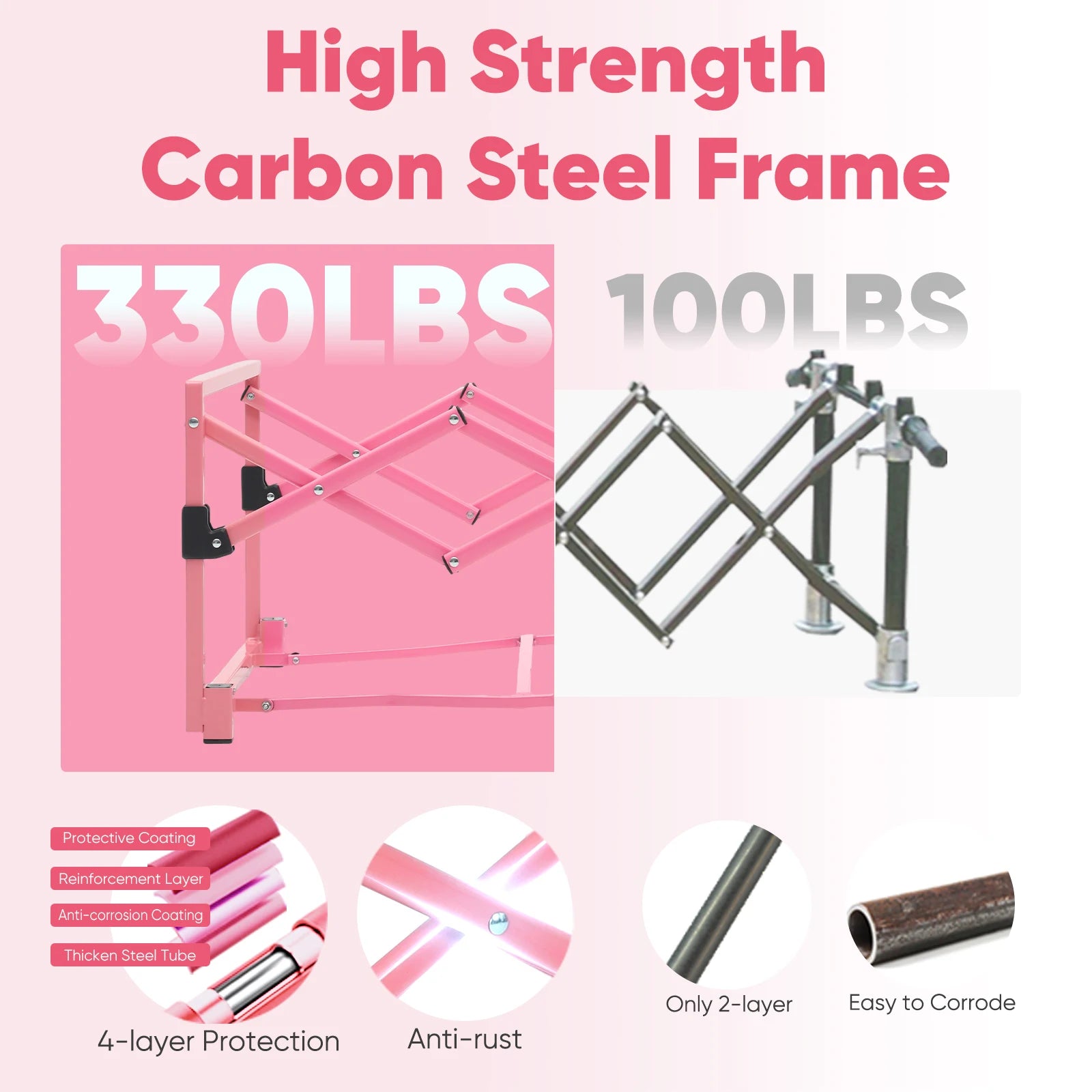 Foldable Collapsible Wagon Cart with 330lbs Weight Capacity, Heavy Duty Lightweight Folding Utility Garden Wagon with Wheel Pink