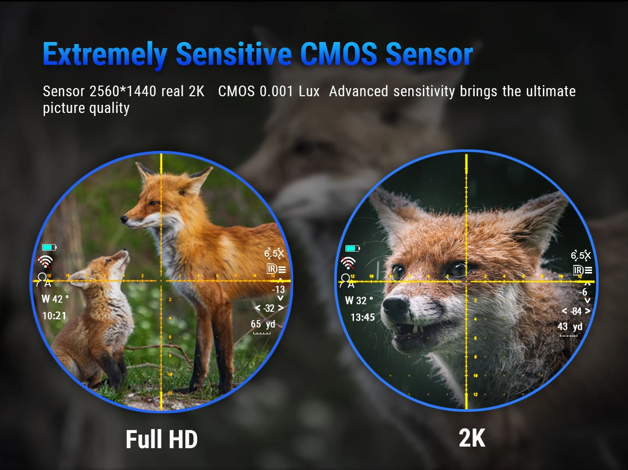 This results in higher picture resolution when combined with a highly sensitive CMOS 0.001 low lux image sensor. Users can select a resolution of 2560 x 1440 (2K) or 1920 x 1080. Users can improve their accuracy and hunt smarter with smart technology.
