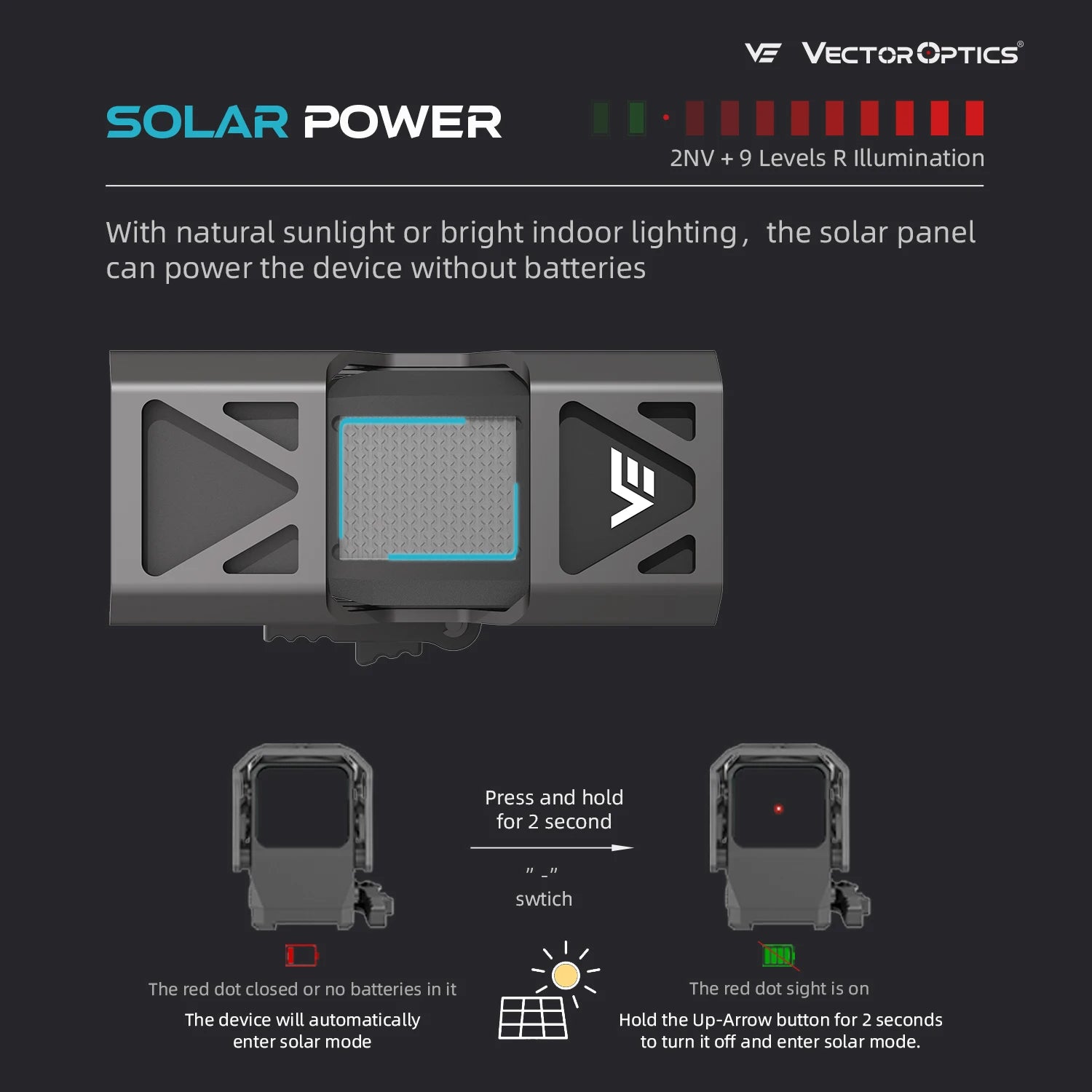 Vector Optics Frenzy Plus 1x31x26 Solar Power Red Dot Sight Up to 80000 Hours Battery Life with Motion Sensor for AR15 Series