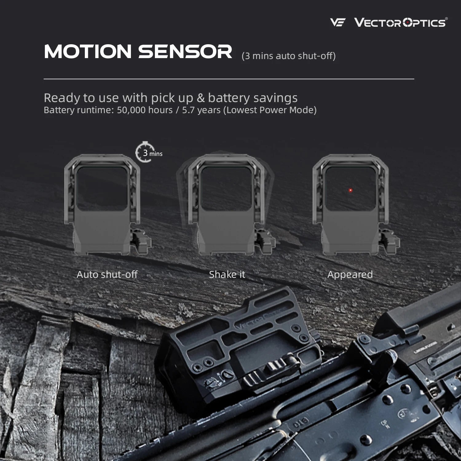 Enhance your shooting experience with the Vector Optics Frenzy Plus 1x31x26 Solar Power Red Dot Sight, specifically designed for AR15 series rifles. This state-of-the-art sight not only offers precision aiming but also boasts an impressive battery life of up to 80,000 hours, ensuring that you stay ready for action without the worry of frequent battery replacements.