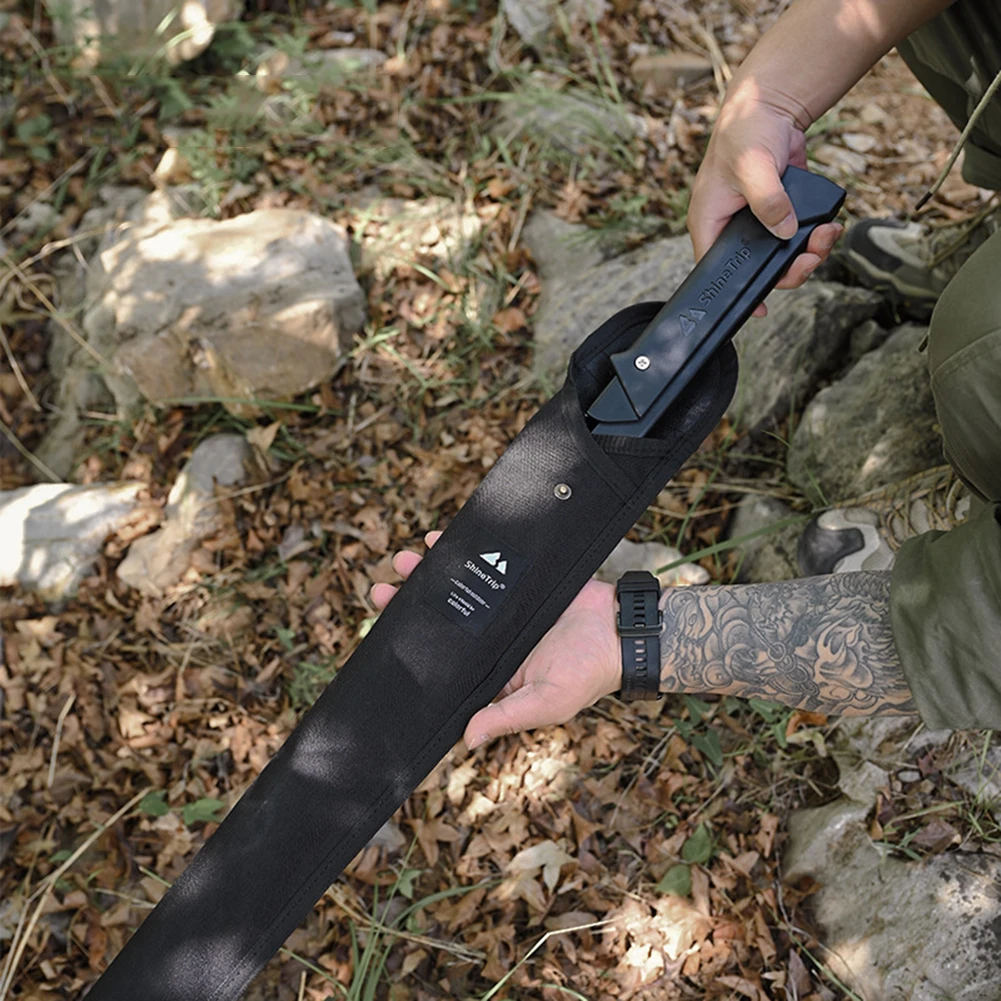Feature: 1. 21-Inch Folding Saw: This 21-inch folding saw features numerous sharp teeth. It quickly folds and unfolds, ensuring efficient cutting performance. 2. High Manganese Steel Saw Blade: The blade is made of high manganese steel (No. 65), known for its exceptional cutting efficiency, strong hardness, and excellent toughness. It is designed to withstand wear and tear, providing long-lasting durability. 3. Combination of Fish Tail and Triangular Teeth: The saw's fish tail and triangular teeth are thoughtfully arranged, making it suitable for cutting both wet and dry wood. The saw body is constructed from lightweight and corrosion-resistant 5052 aluminum alloy, and all components are detachable and replaceable for easy maintenance. 4. Portable and Easy to Use: This saw offers convenient portability with its one-piece quick installation design. It can be rapidly unfolded and folded for compact storage. Its small size when folded makes it convenient to carry during outdoor activities. 5. Comfortable Grip: The saw's handle features a nylon protective cover, providing a comfortable grip and preventing hand fatigue. It comes with a durable fabric packaging bag that ensures safe storage and easy transportation during your adventures. Specification: Origin: Mainland China Type: Camping Saws Color (optional): Silver, Black Saw body material: aluminum+high-strength PA66 nylon Saw blade material: 65 # high manganese steel saw blade Product size: 540mm/21.26in * 210mm/8.27in * 26mm/1.02in Storage height: 550mm/21.65in Product weight: 530g (excluding outer bag)
